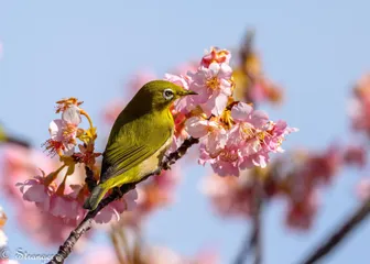 河津桜とメジロ