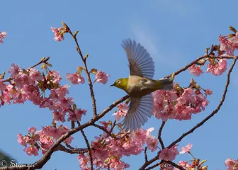 さくジロー 河津桜とメジロ