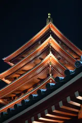 天を衝く 多くの参拝客や観光客で賑わう浅草も夜の11時近くになると人影もまばらです。浅草寺五重塔もライトアップされて美しい姿を見せてます。