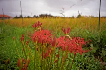 NEW 彼岸花 scan film №4 彼岸花 scan film №49 この赤と稲穂の黄と青空が揃ったときは絶景。数カ所で見られたが、ここだけとなった。