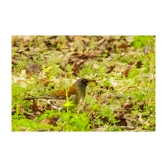 林にいました。虫を見つけたのか地面を突いていました。