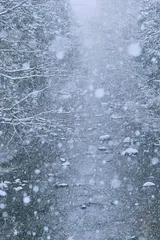 雪 細かい雪がたくさん❄❄❄ 静かな森の橋の上 離れた木は見えないほど