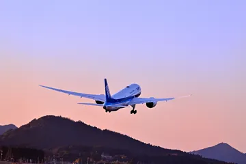霧島連山をバックに離陸 霧島連山(高千穂峰)をバックに飛行する飛行機(鹿児島空港にて) Nikon Z9 NIKKOR Z24-120mm f/4 S1/1000秒 f/4 ISO250