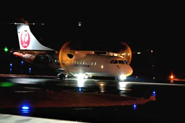 夜の空港、到着したプロペラ機(ボンバルディア機)回転するプロペラが面白い感じに写ってくれました。Nikon Z9 NIKKOR100-400mm f/4.5-5.6 VR S1/30秒 f/5.3 ISO4000