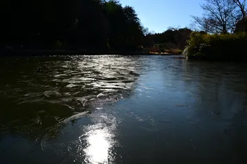 IKE 1月4日の朝は冷え込み厳しく昼近くになってようやく陽を浴び氷の衣を脱ぎ息を吹き返し始めた池の様を撮ってみました。Zf 24mm f3.5 1/2500秒 ISO200
